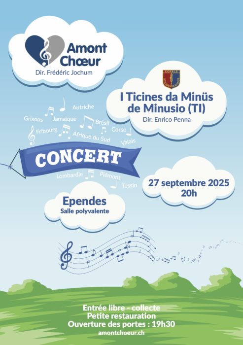 Placé sous la direction du Maestro Frédéric Jochum, l’ensemble vocal mixte « Amont Chœur » donnera son concert annuel avec un programme très varié. Au piano: Rui dos Reis. En deuxième partie, ils ont invité « I Ticines da Minüs ». Une soirée qui sera haute en couleurs vocales.