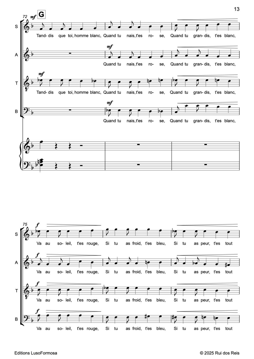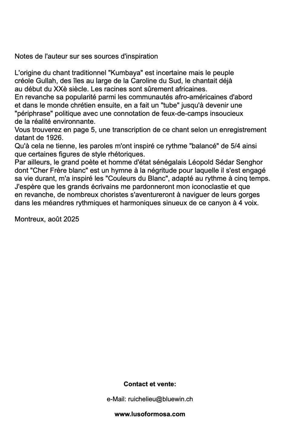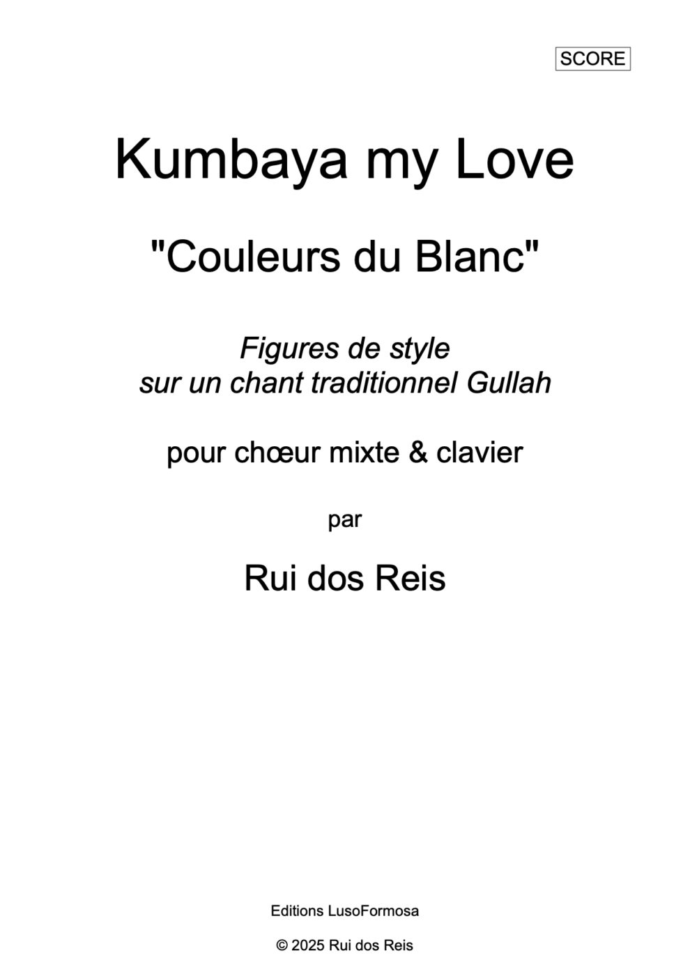 « Kumbaya my Love » pour Chœur Mixte & Piano Page_2 Page_4 Page_5 Page_6 Page_7 Page_8 Page_9 Page_10 Page_11 Page_12 Page_13 Page_14 Page_15 Page_16 Page_17 Page_18 Page_19 Page_20 Page_21 Page_22 Page_23 Page_24 Page_25 Page_26 40.00 CHF Acheter (nous contacter) Disponible en Téléchargement Composer Rui dos Reis Date 2025