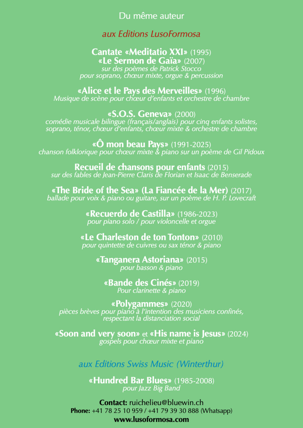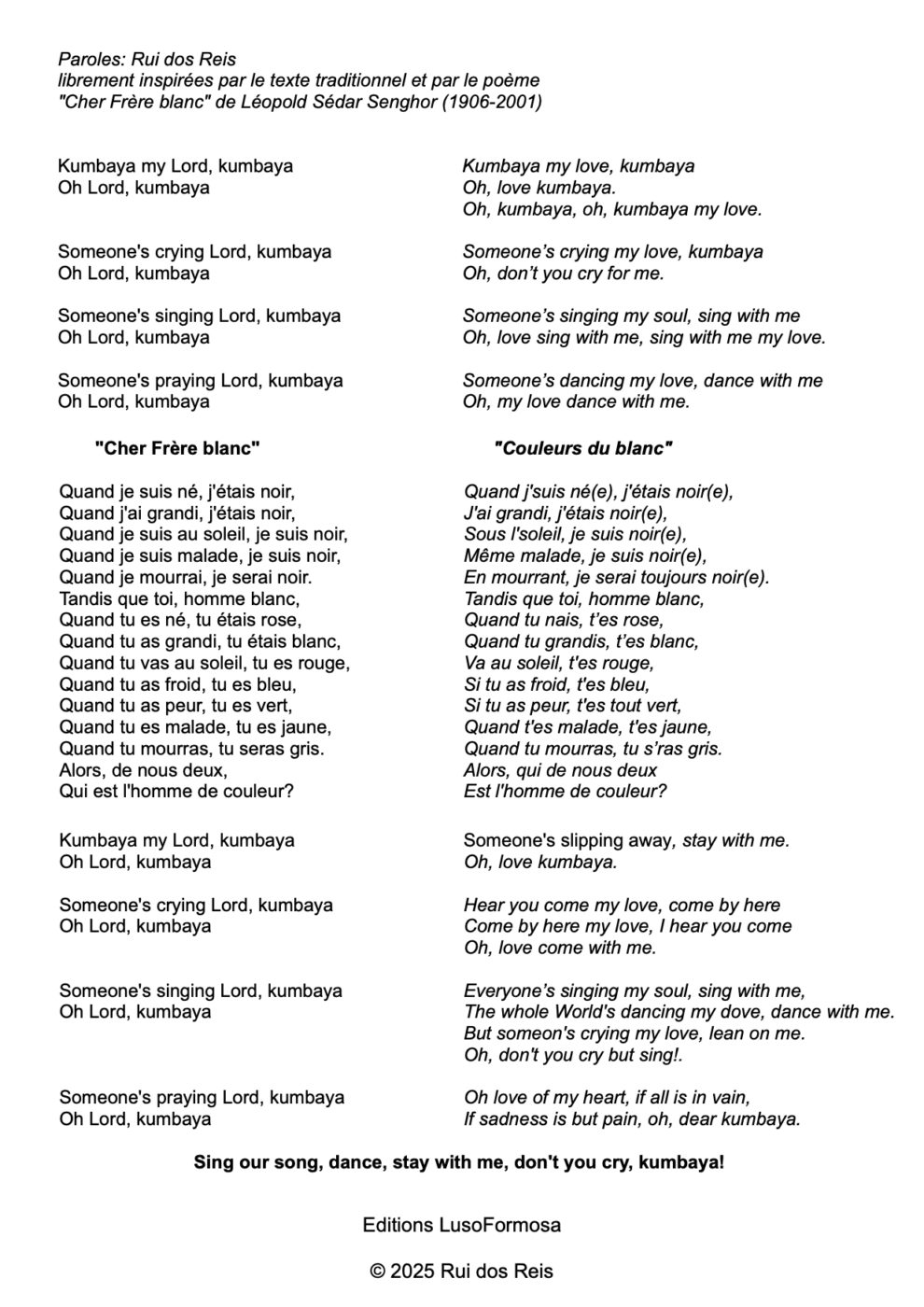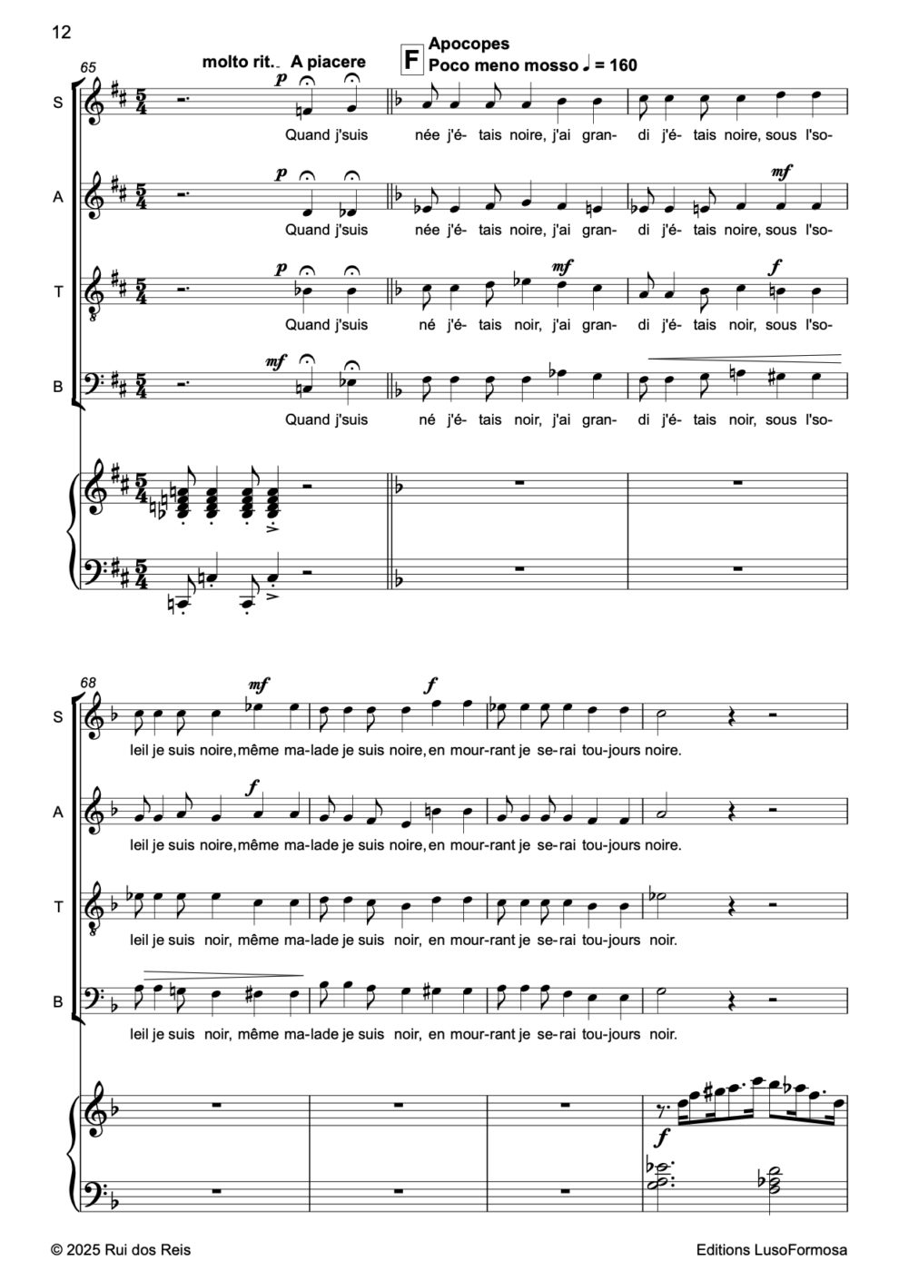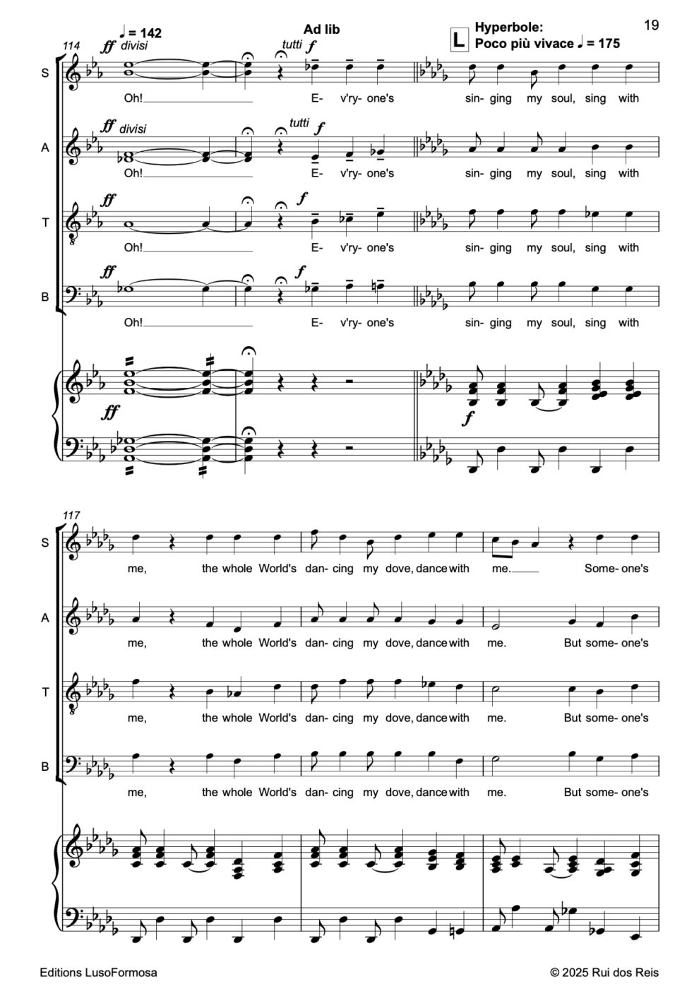 « Kumbaya my Love » pour Chœur Mixte & Piano Page_2 Page_4 Page_5 Page_6 Page_7 Page_8 Page_9 Page_10 Page_11 Page_12 Page_13 Page_14 Page_15 Page_16 Page_17 Page_18 Page_19 Page_20 Page_21 Page_22 Page_23 Page_24 Page_25 Page_26 40.00 CHF Acheter (nous contacter) Disponible en Téléchargement Composer Rui dos Reis Date 2025